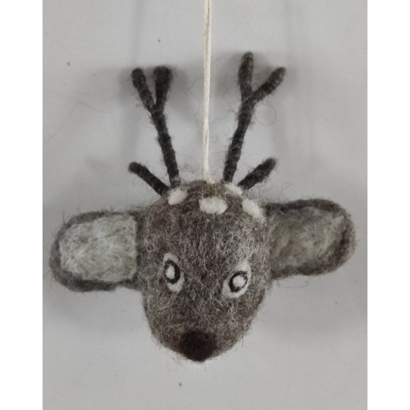 Ett sånt gulligt rådjurshuvud i grå ull. Väldigt välgjort för hand med fina detaljer. Det finns även ett rådjurshuvud i ljusbrunt. Storlek ca 10 x 10 cm. Fairtrade.
